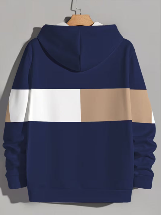 Sweat à capuche homme color-block avec capuche bicolore et motif géométrique